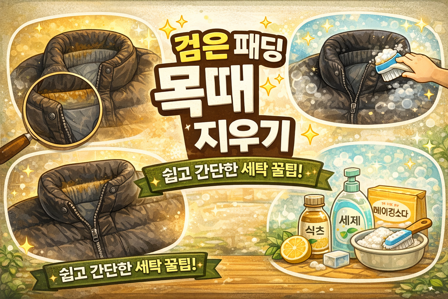 나도 겨우내 입던 검정 패딩 목부분에 얼룩이 생겨서 세탁을 했는데, 세탁해도 안 지워져 속상했는데 혹시나하고